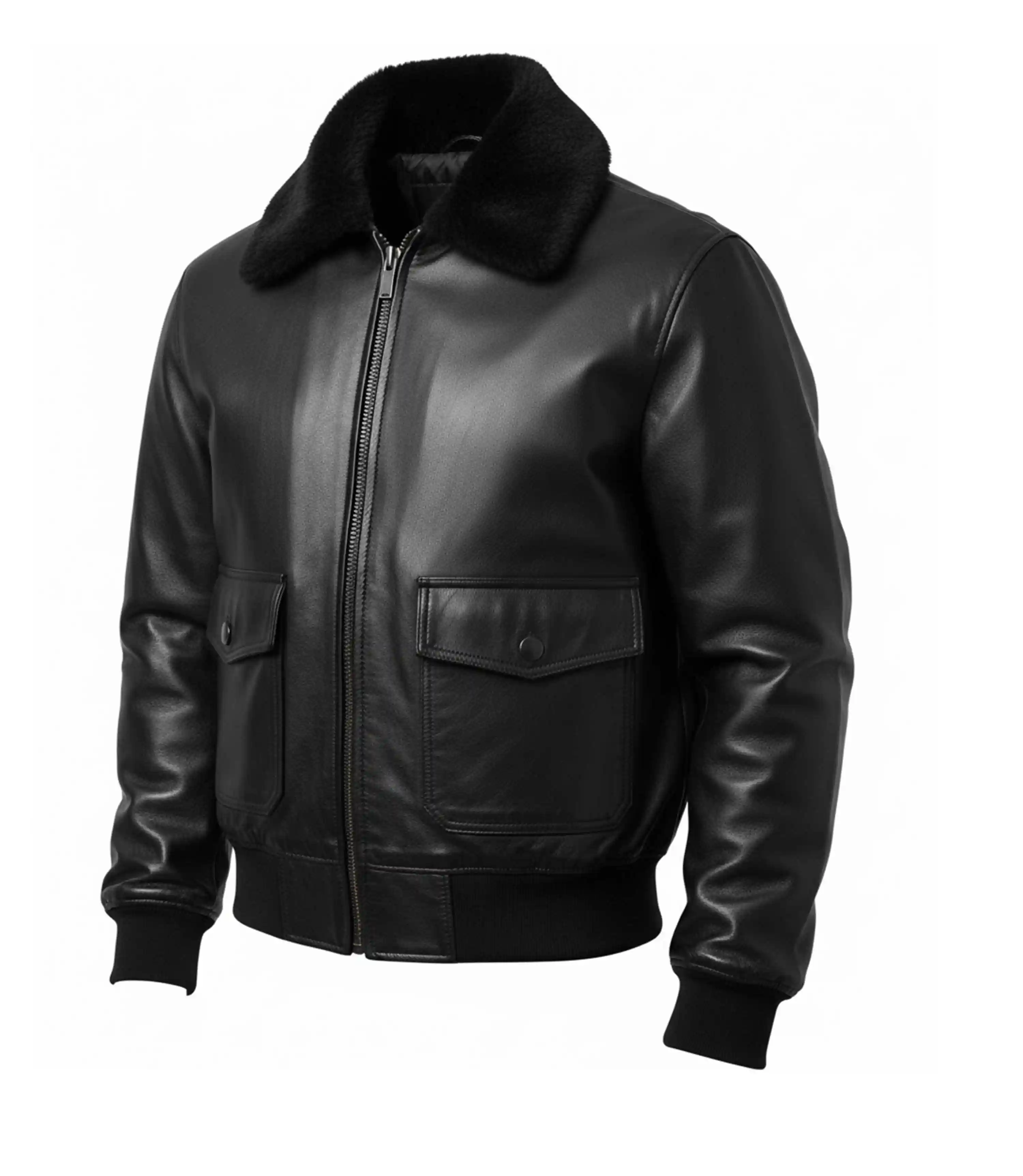 Mens G1 Flight Black Leather Bomber Jacket