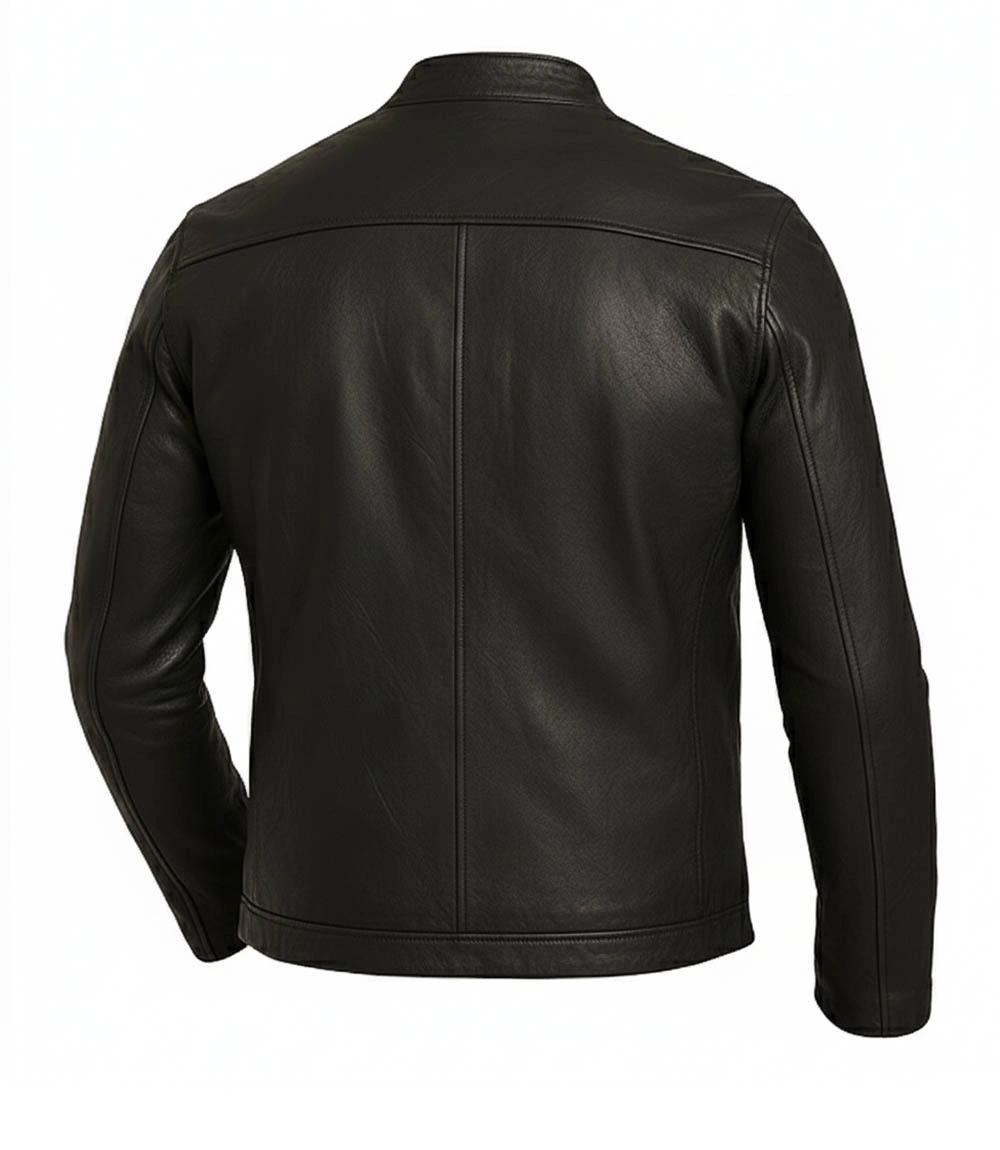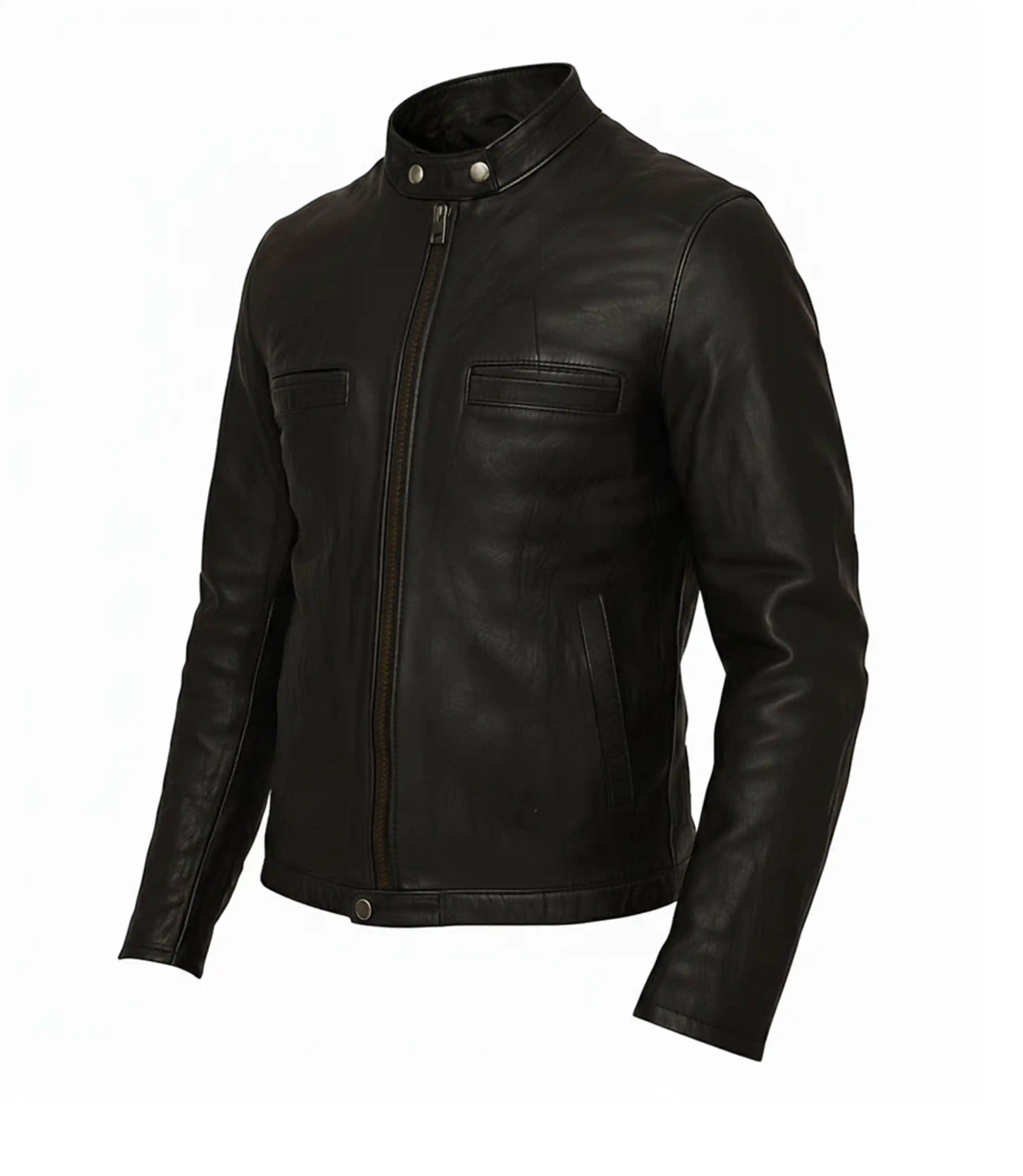 The cafe moto jacket is made up lambskin with a tap of wrinkle all over its exterior. Quality polyester has been used in the lining of this leather jacket black making you enjoy the time when you carry it. CJ proudly offers leather outerwear and it is a morsel enriched with vividness & vigor.