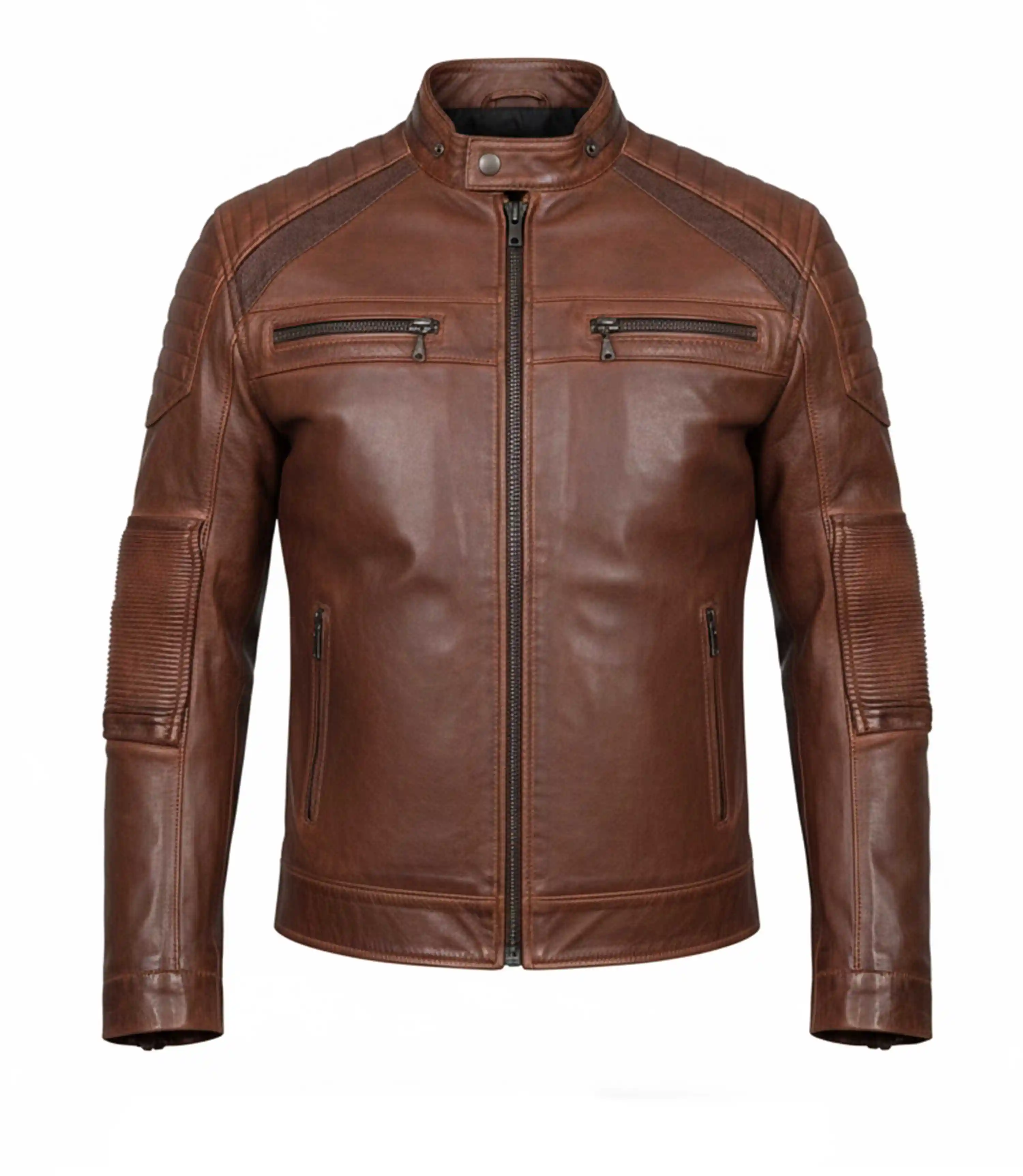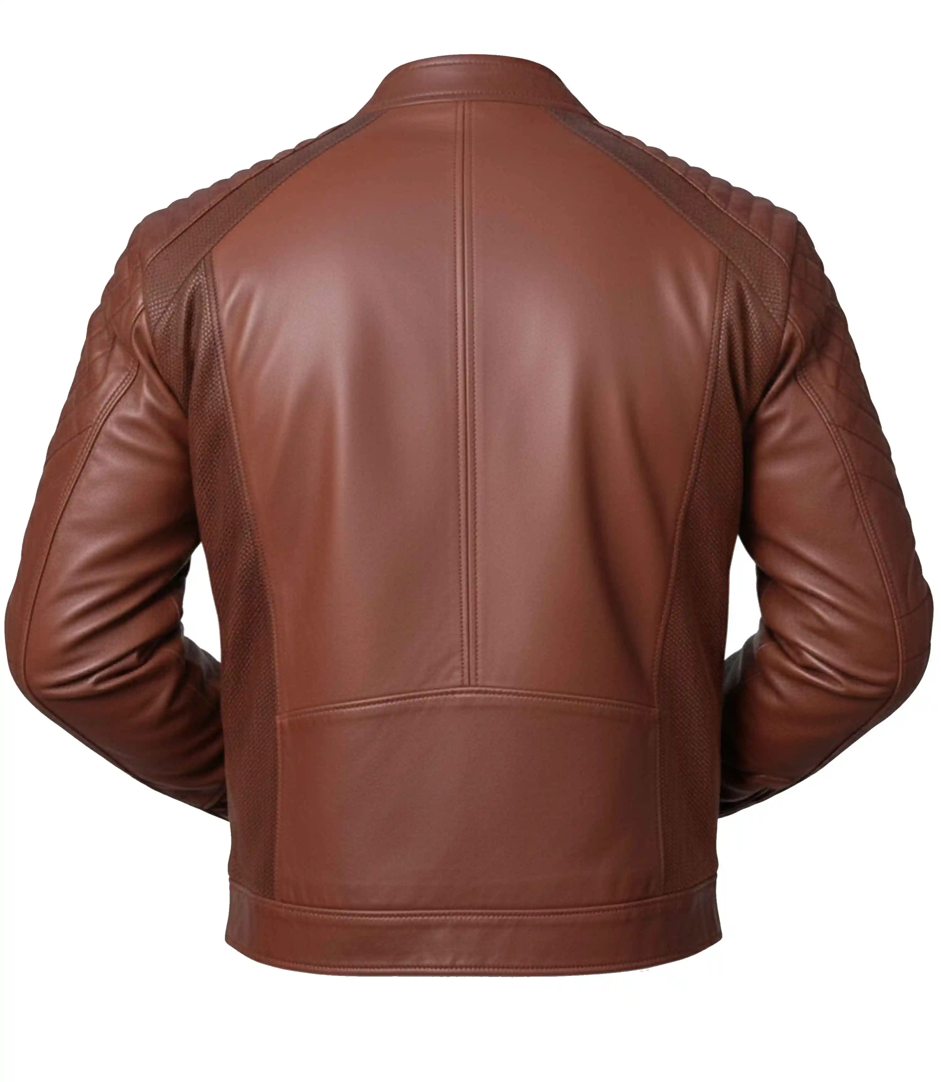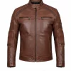 The perforated leather jacket has four outside pockets and two inside ones, so keeping your phone, wallet, or keys close will never be a problem with it. The long sleeves end with zipper cuffs, giving it a nice fitted touch. Plus, the stitching is neat and done with precision, so it is literally built to last. The slim-fit cut makes it sit nicely on your body without feeling too tight. It’s stylish but also very practical; this is a kind of jacket you can wear almost anywhere without a second thought. The waxed brown biker jacket men isn’t just another layer; it’s a piece that adds confidence and makes you stand out without trying too hard.